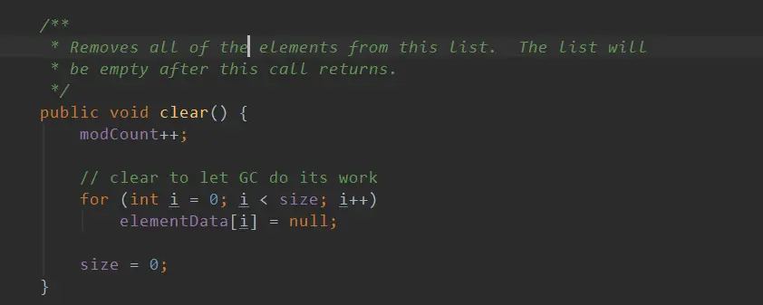 while (i != size && modCount == expectedModCount) {