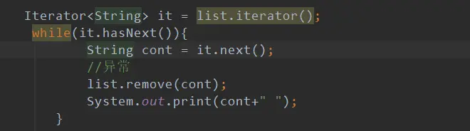 //也就是说不能在迭代器进行元素迭代时进行增加和删除操作,否则抛出异常