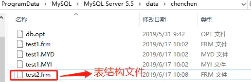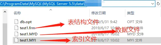 )ENGINE=MyISAM;我们可以去MySQL的相关目录看一下他实际存储的内容,发现他对应着三个文件。