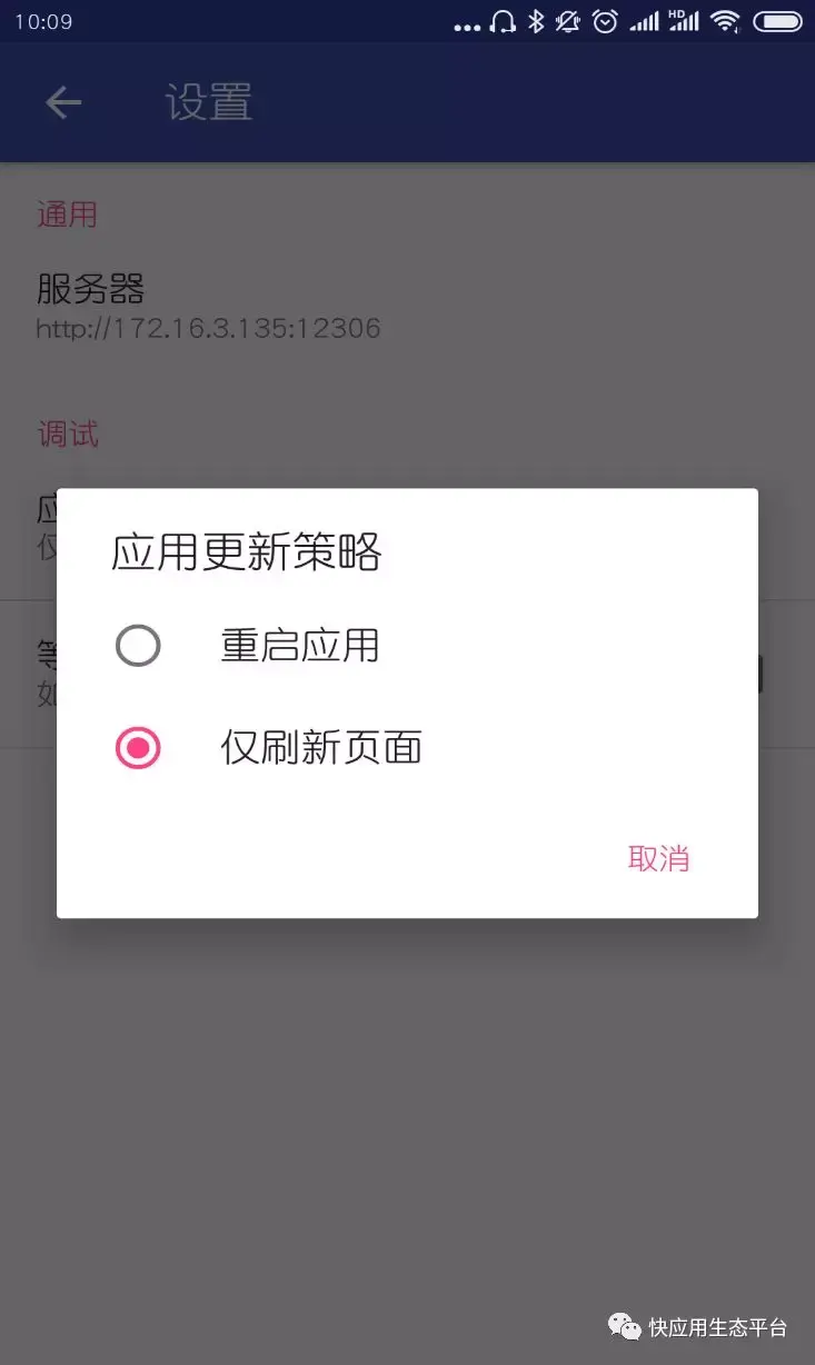 c.若是调试一个新写的页面,选择“仅刷新页面”即可,默认选中“重启应用”
