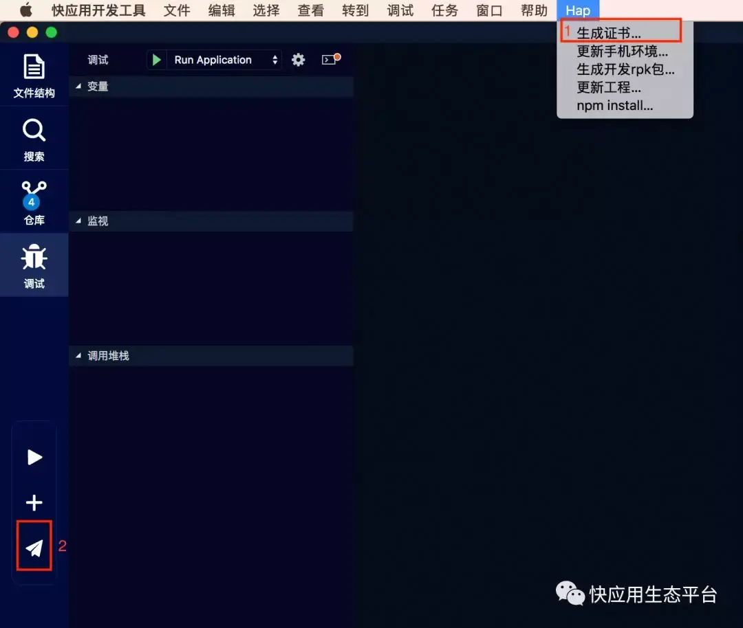 (1)生成证书。点击快应用面板的【生成证书】按钮, 按提示输入相关信息