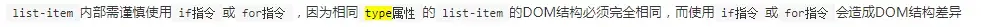 (4)list组件中,list-item组件需要设置type属性,需要注意的是,如果是不同的item,要设置不同的type属性,否则会出现DOM结构错乱