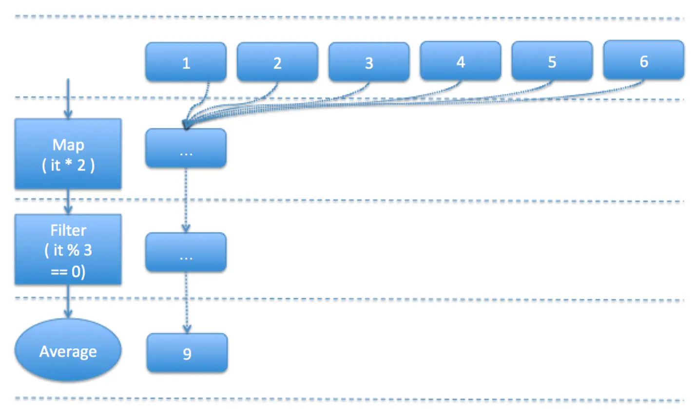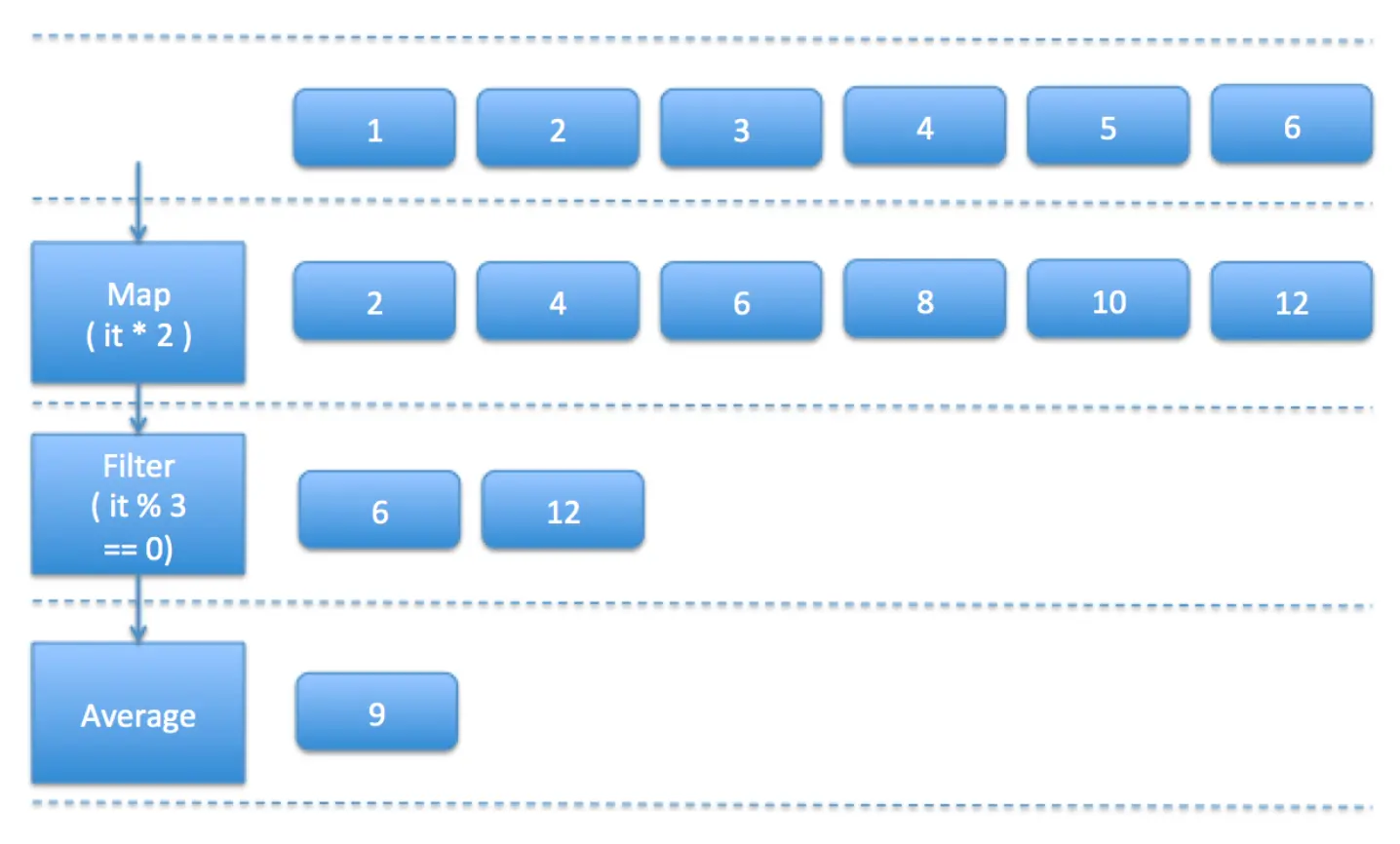 list.map{ it * 2 }.filter { it % 3 == 0 }.average()