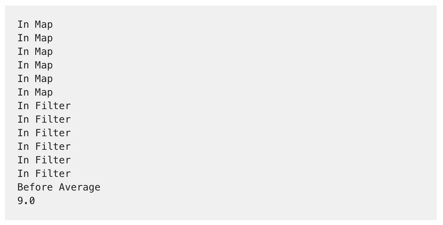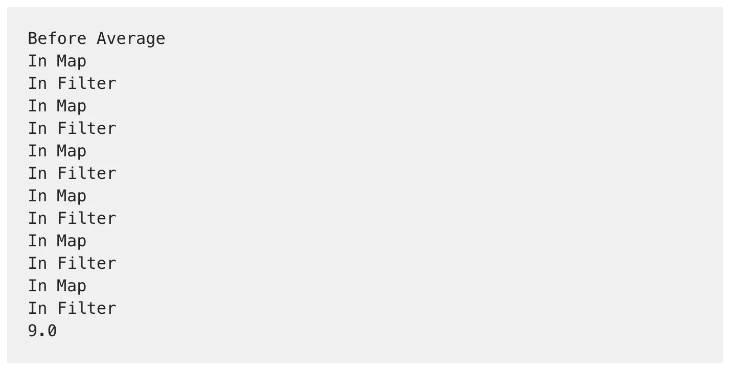 Before Acerage被先打出来了。这就有意思了......换句话说,如果我们不调用average(),则不会对Sequence执行任何操作。