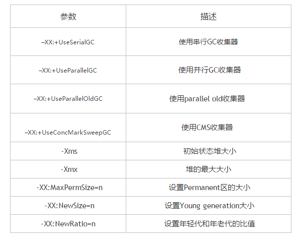 主要需要熟悉的是总存储空间大小,各个区的比例设置,针对不同的区设定不同的回收器和回收算法。在默认情况下有些选项是不打开的,因此需要手动配置,并且根据自己应用的情况选择适当的参数。