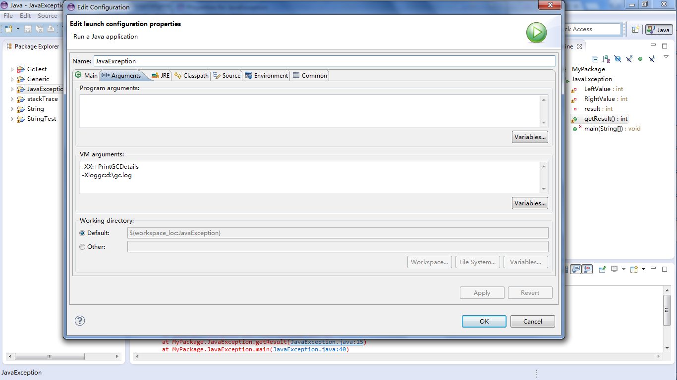 对于应用程序,在eclipse中可以通过工程属性增加VM属性,将GC输出保存为日志文件。