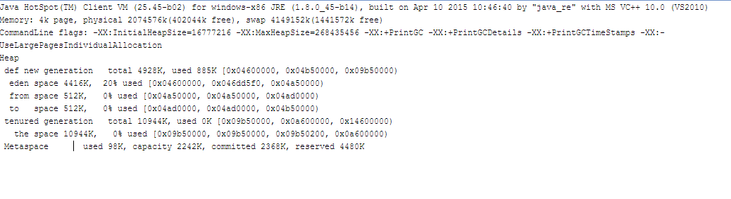 eclipse安装目录下有个.ini文件,即eclipse的配置文件,将需要的参数配置填写进去即可。启动eclipse后,查看GC日志,发现整个启动过程中共发生了27次GC,其中有3次Full GC,整个启动过程,我掐指一算大概6~7秒,相当慢了
