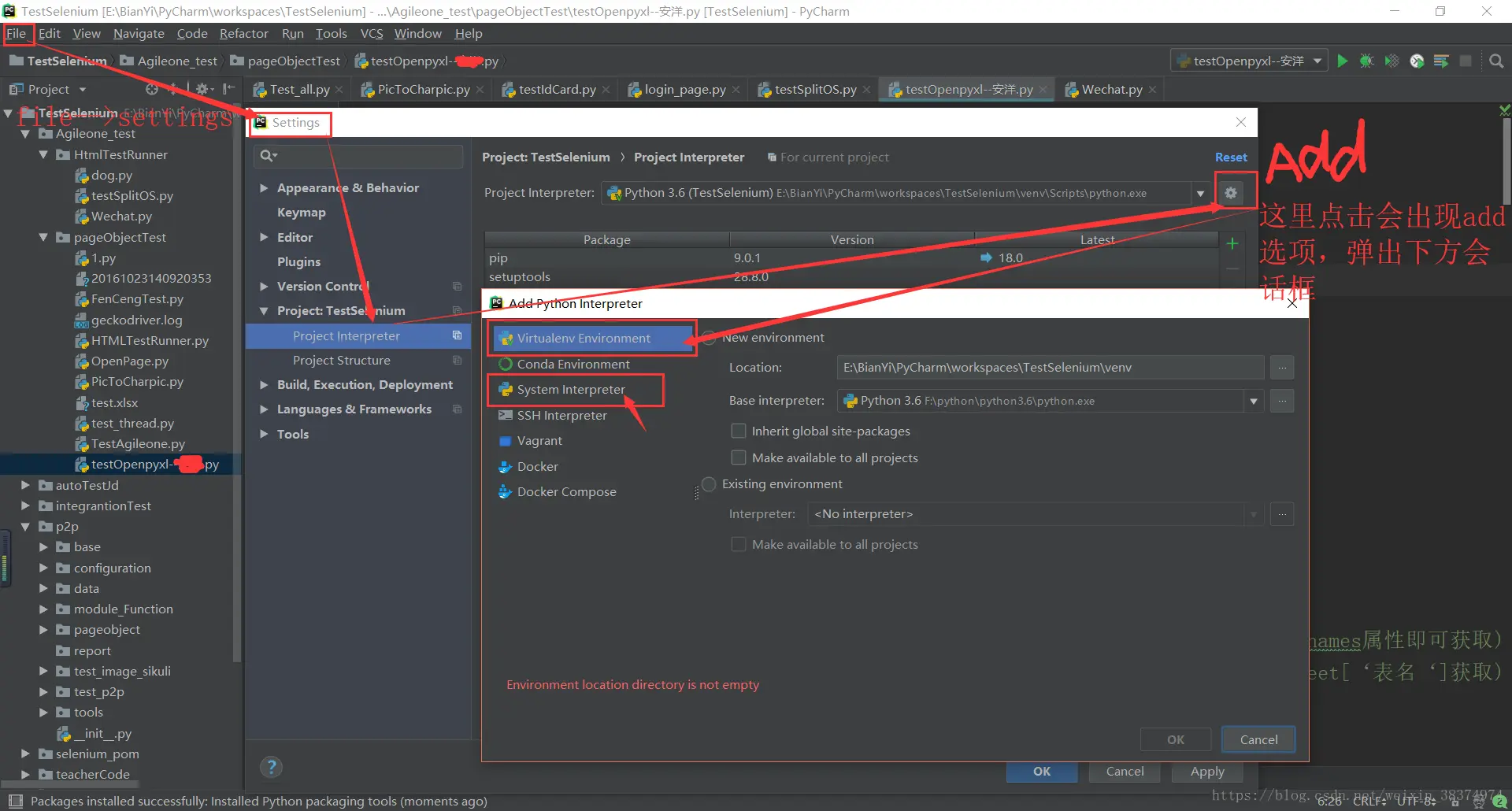 其实,当时我就想过,我当时已经在我电脑本身已经 pip install selenium了(整个环境变量中已经存在),为什么pycharm导入不了,但是当时没有仔细去想也就不了了之。今天安装另外一个包的时候,注意了这一点,因为pycharm里面pip安装的时候报错了,但是通过环境变量(cmd)安装,就没有出错。