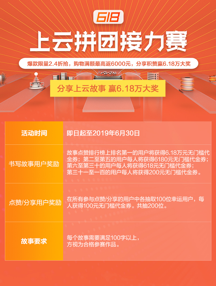 三、上云接力赛分享集赞赢6.18万大奖