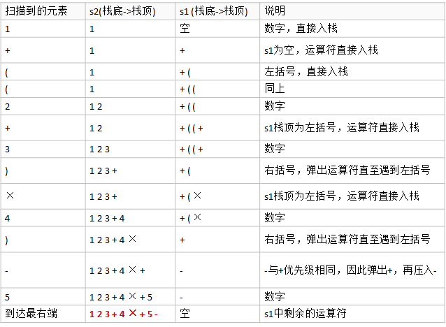 //栈非空,操作符优先级小于等于栈顶优先级时出栈入列,直到栈为空,或者遇到了(,最后操作符入栈