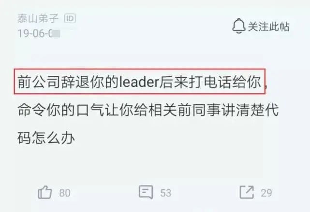 原来这个程序员在上家公司做了4年多,后来公司因为各种原因辞退了很多员工,其中也包括这个程序员。当该程序员离职12天的时候,突然就接到了前领导的电话,他在电话中要求员工回公司把代码讲清楚。而且前领导并不是很客气的语气,而是用一种命令的方式。程序员接到这个电话时都蒙了,都离职这么久了,你这要求也有点不合理吧。