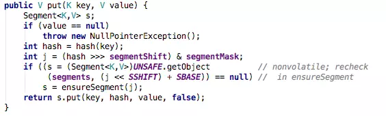 接下来我们看一下ConcurrentHashMap中的几个关键函数,get,put,rehash(扩容), size方法,看看他是如何实现并发的。