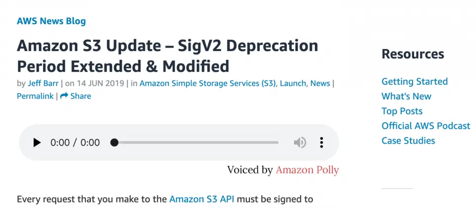 AWS原本宣布Amazon S3从6月24日开始,停止支持旧的签章方法Signature Version 2(SigV2),现在改变计划,虽然新的储存桶不再支持SigV2,但现存的部分仍可继续使用,并呼吁所有使用者更新旧的程序代码,修掉SigV2相关的部分改用SigV4。为了安全目的,Amazon S3 API所做的请求都必须经过签章授权,而由于Amazon S3是AWS很早期就提供的服务,在2006年就对外释出,因此其使用的签名模型是SigV2,而在2012年的时候,AWS另外推出了更加灵活的签章方法SigV4,并在2013年后,在所有区域都仅能使用SigV4。