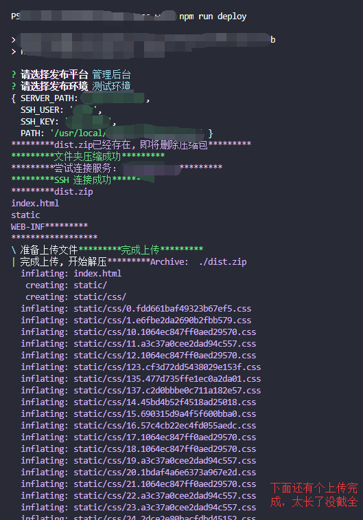 await SSH.putFile(distZipPath, config.PATH + '/dist.zip')