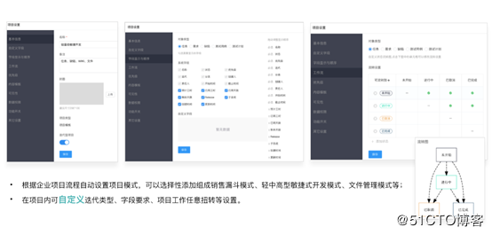 五、不同业务场景下的项目管理 除了提供丰富的项目管理模板供用户选择外,CORNERSTONE还提供了强大的自定义设置功能,供用户自定义项目模板,像搭积木一样,适应更多业务场景的需求。