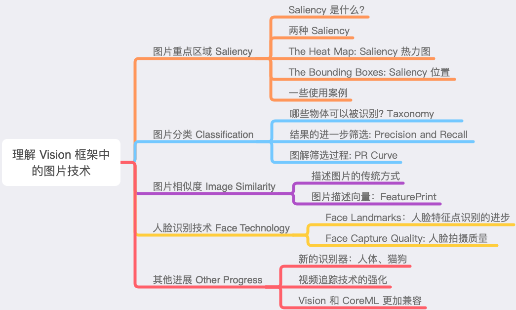 Vision 是 Apple 2017 年和 Core ML 一起推出的、基于 Core ML 封装的图像识别库。根据官方文档看,Vision 包含就有人脸识别、机器学习图片分析、条形码识别、文字识别等基础功能。