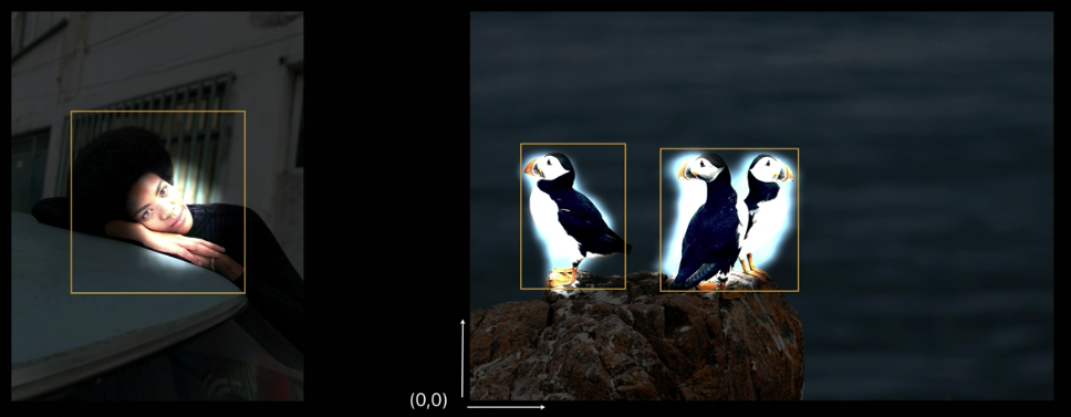 Bounding boxes 就是探测出来的 Saliency 的位置信息,不过需要注意的是,坐标系的原点在图片左下角。对于基于注意力的 Saliency 来说,只有唯一的 bounding box,而基于物体的 Saliency 则最多有三个 bounding box。