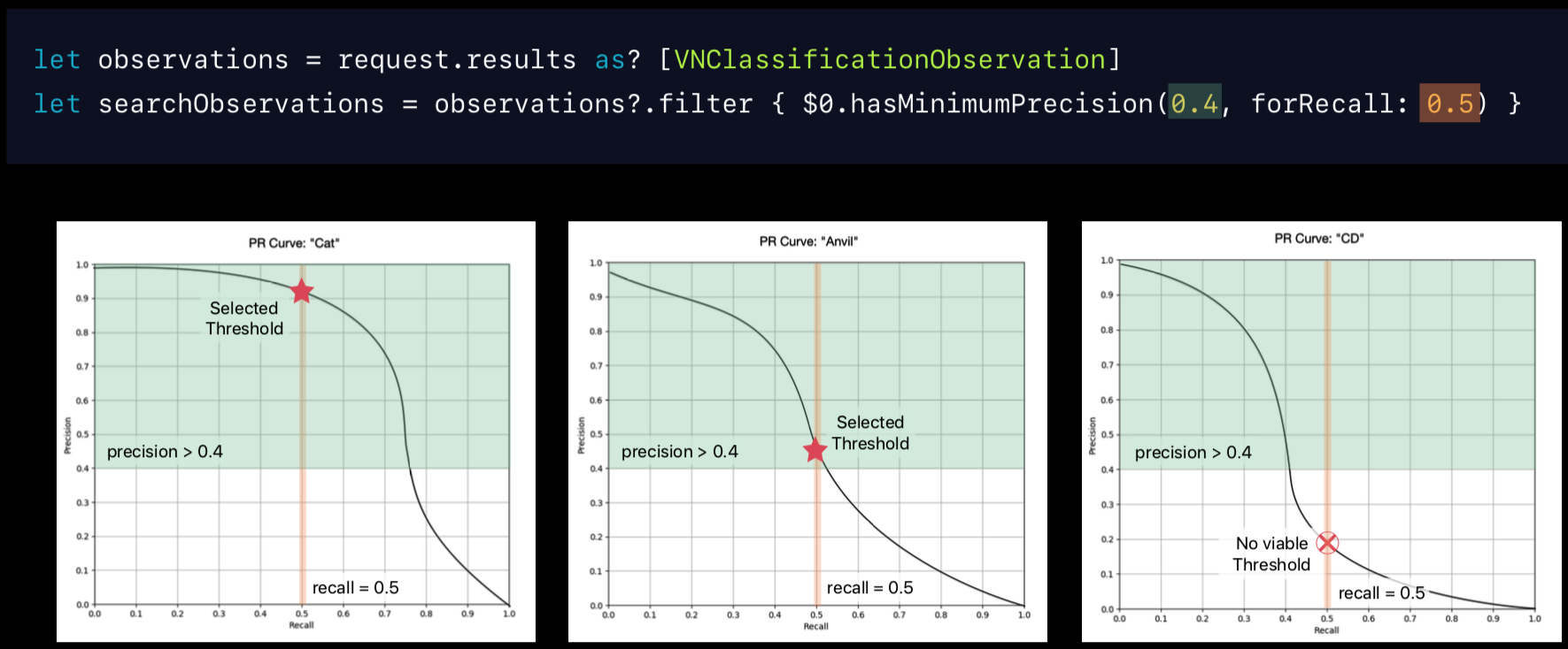 let searchObservations = observations?.filter { $0.hasMinimumPrecision(0.5, forRecall: 0.7)}