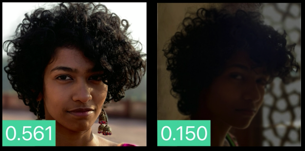 注意,face capture quality 不能和一个固定阈值进行比较。不同系列的照片中 face capture quality 值分布区域可能不同,如果我们以一个固定的阈值来过滤(比如上图中的 0.520),那么有可能会把左边全部的照片都过滤掉,哪怕其实左边的图片有一些相对拍的好的照片。换句话说,face capture quality 只是一个对同一个被摄物体的相对值,它的绝对数值大小并不能直接反映照片的拍摄效果。