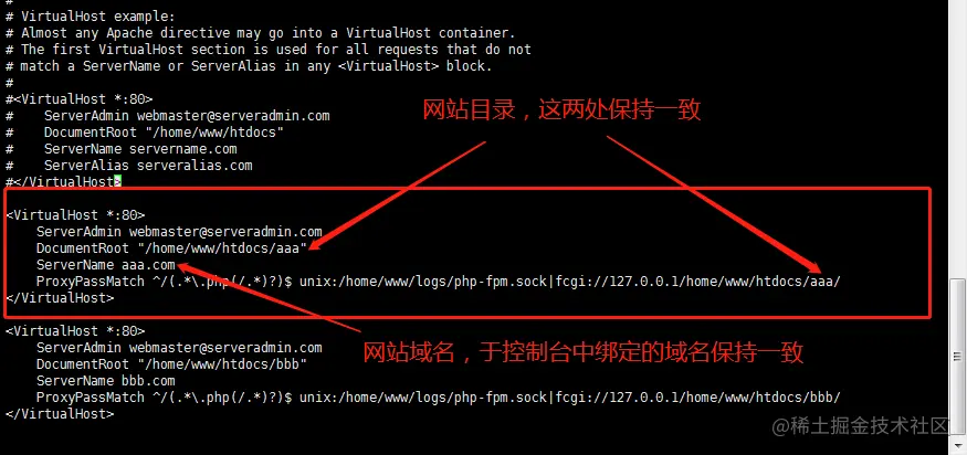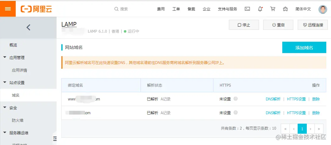 其实这个跟普通的 Apache 配置多站点是一样的,只是要注意一下域名的绑定要在阿里控制台进行,关于 Apache 更多的配置可参考官方文档。