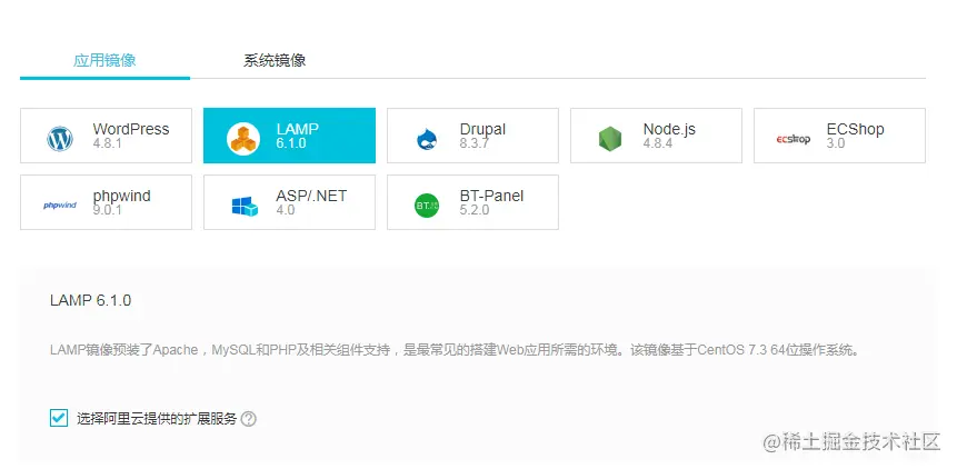 我所选择的是最便宜的一款了,服务器为 CentOS 7.3,官方自带了 LAMP 6.1.0 软件,如下图是本次的实验配置。
