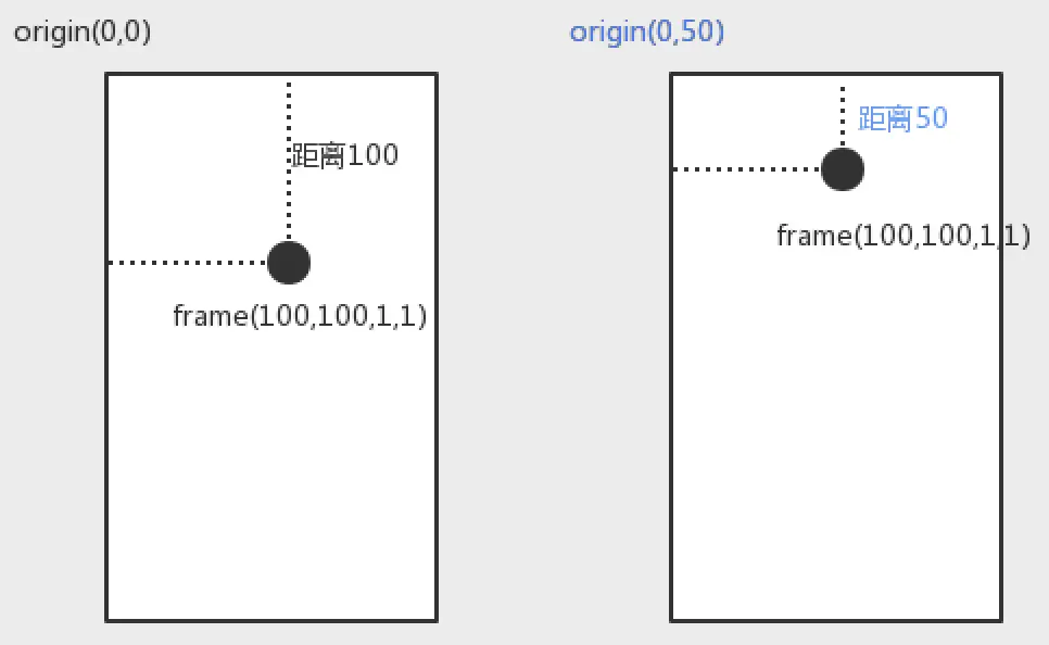 bounds是scrollView内部坐标系,bounds的origin,相当于原点的坐标值。