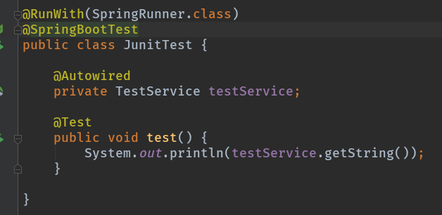 在单元测试类上添加@RunWith(SpringRunner.class)、@SpringBootTest注解: