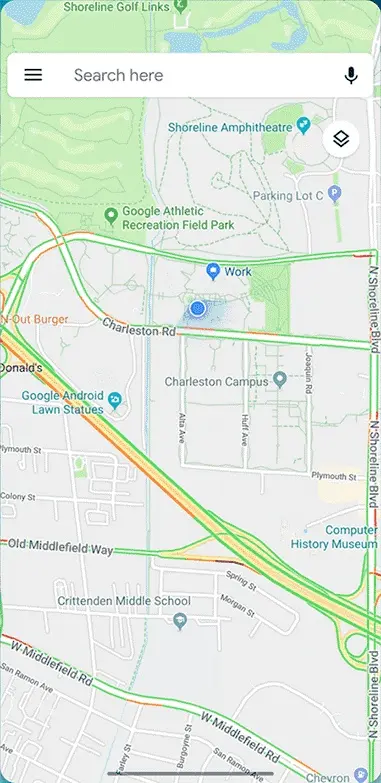 上面这张图并非实际录屏。仔细观察你会发现,当屏幕内容显示为 Google 地图界面时,底部用于导航的手势操作指示条样式,从未在当前任何一个版本的 Android 系统中出现过。即便是最新的 Android Q Beta 4(同时也是这篇博文的主角),所搭载的导航操作指示条也最多只有图中所示的一半大小: