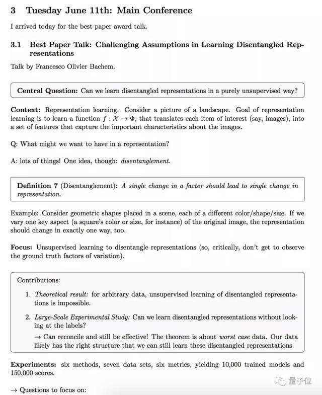 比如best paper的介绍里,就记录了这篇论文研究者想要解决的问题、解决问题的思路、现场的讨论问答、重点内容的定义、核心方法和贡献。