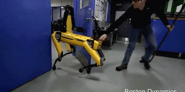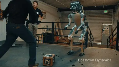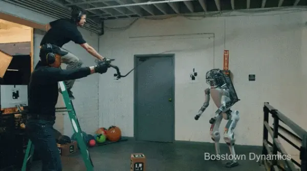 在测试机器人期间,波士顿动力的工作人员为了“锻炼”这些机器人,他们会时不时踹上一脚……