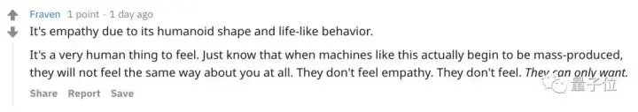 这是因为它酷似人类的外形和动作,会让你产生同情心。当这样的机器人真正开始大规模生产时,他们根本不会对你产生同样的感觉。他们也没有同情心。