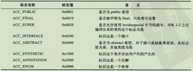 先来看访问标志都有什么,以及每个对应的16进制数是什么?
