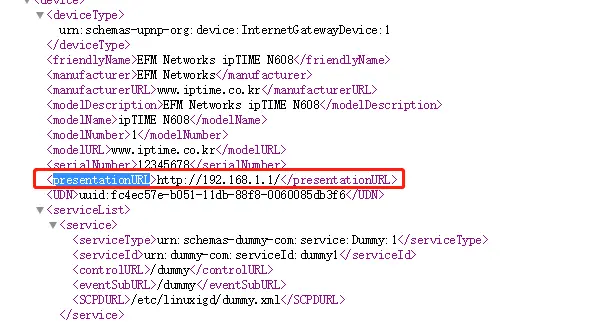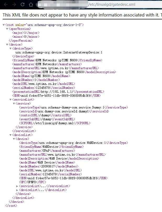 设备的描述通过 HTTP 协议来完成。例如下面就是一个真实设备返回的 XML 信息:
