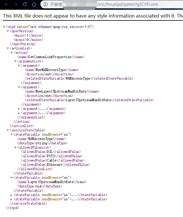 一个服务描述(即 SCPD 地址中的 XML)的示例如下: