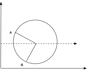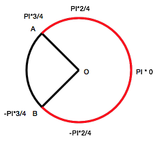现在假设A点的角度为 3/4 * PI, B点的角度为 - 3/4*PI,如果按照角度插值的方式进行运动。示例代码片段入下: