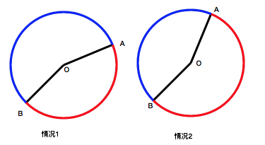B点的角度不应该加上PI*2 - 情况2: 红色弧线的角度大于PI,此时应该沿着蓝色弧线动画,此时