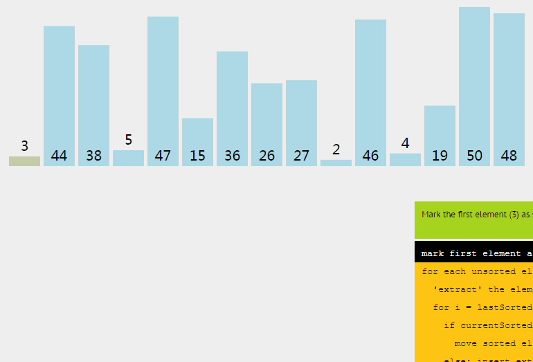 for(let i = 1; i < arr.length - 1; i++) { //外循环从1开始,默认arr[0]是有序段