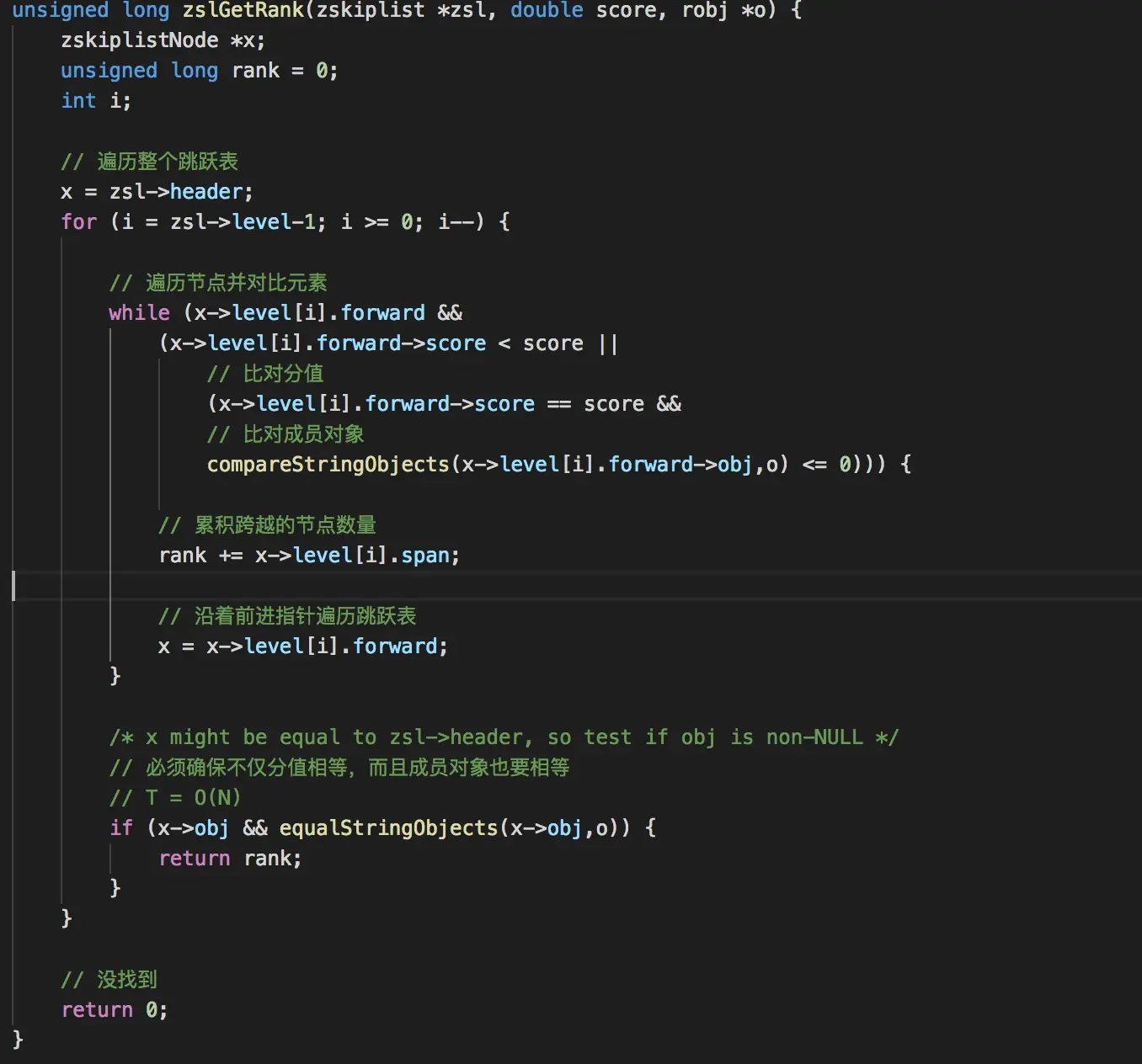 3. zrank怎么取排名的? 时间复杂度:T_wrost = O(N), T_avg = O(log N)