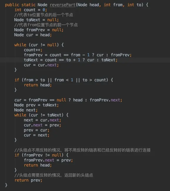 1:先判断是否满足1<=from<=to<=N,如果不满足,直接返回原来的头节点