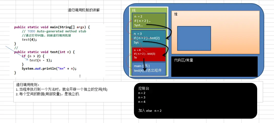 - 递归必须向退出递归的条件逼近,否则就是无限递归,出现StackOverflowError,死龟了:)
