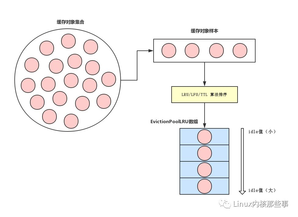 evictionPoolPopulate() 函数后面会进行分析,现在只需要知道 evictionPoolPopulate() 函数是选取一些缓存对象样本就可以了。