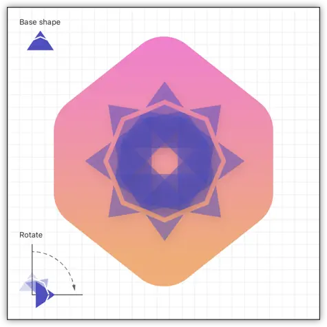 设计中要求在徽章的背景上旋转并重复多次山峰的 shape 。