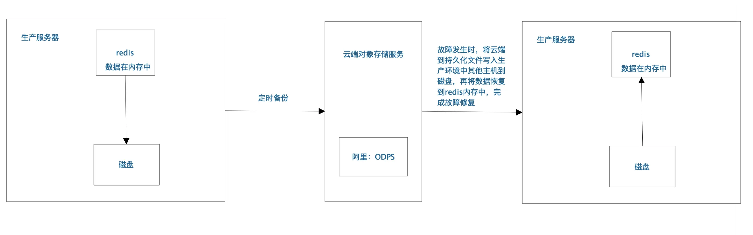 - RDB会生成多个数据文件,每个数据文件都代表了某一个时刻中redis的数据,这种多个数据文件的方式,非常适合做冷备,可以将这种完整的数据文件发送到一些远程的安全存储上去,比如说Amazon的S3云服务上去,在国内可以是阿里云的ODPS分布式存储上,以预定好的备份策略来定期备份redis中的数据