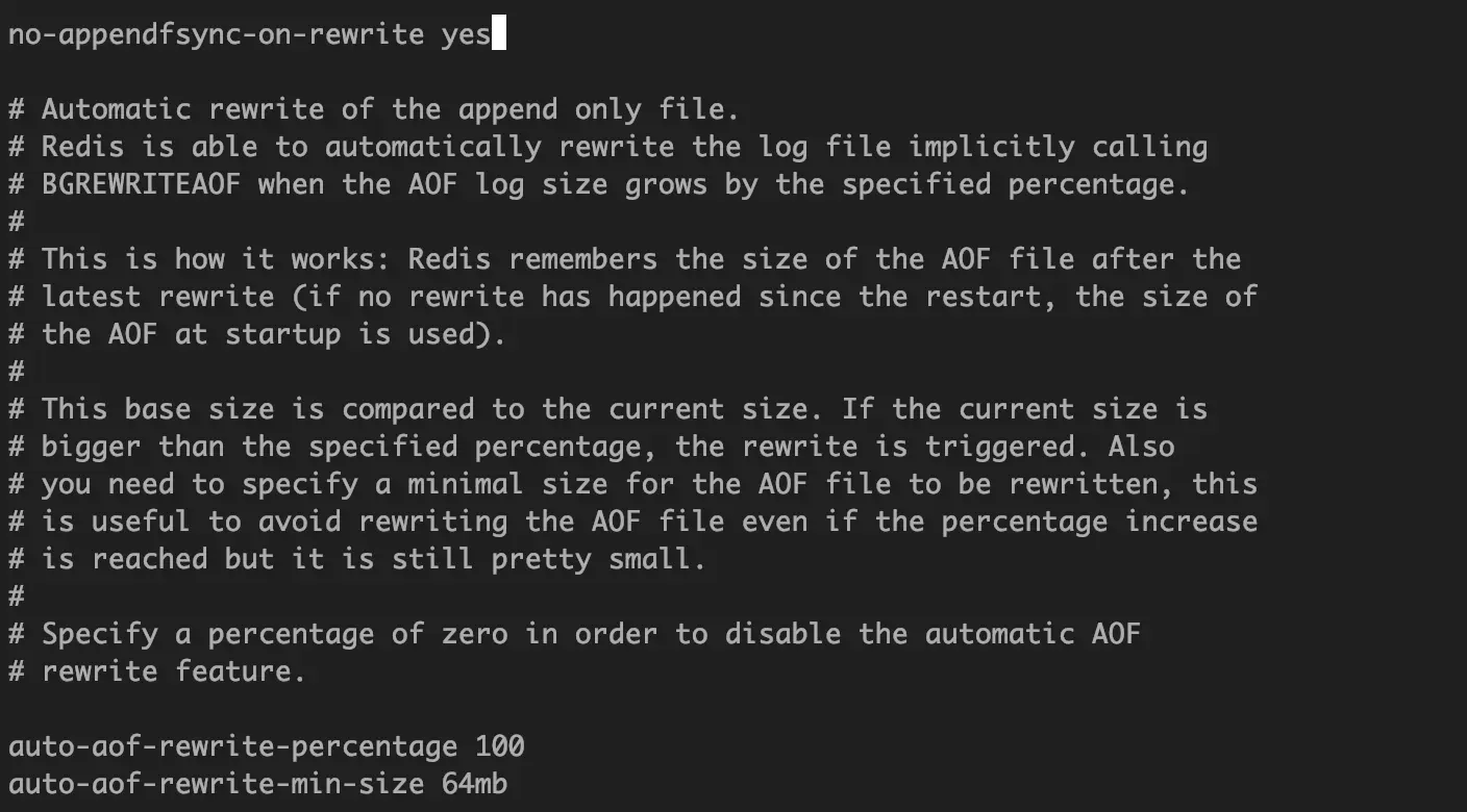1. 修改redis.conf,开启AOF持久化机制(每秒一次fsync)、开启AOF的rewrite机制(重启生效)