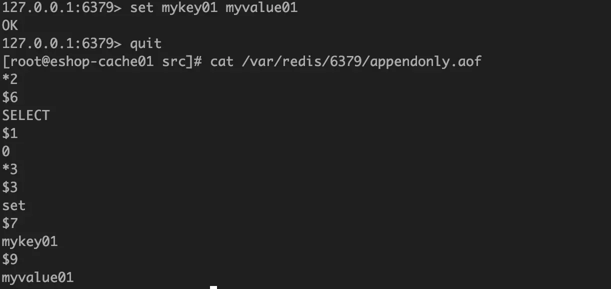 1. 插入一个键值对,查看AOF(日志)文件: