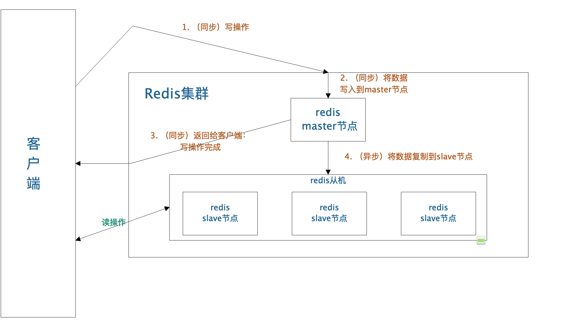 - 异步复制:master每次接收到写命令之后,现在内部写入数据,然后异步发送给slave node