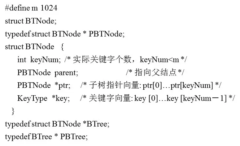 B树的类型和节点定义如下图所示: