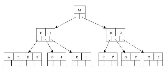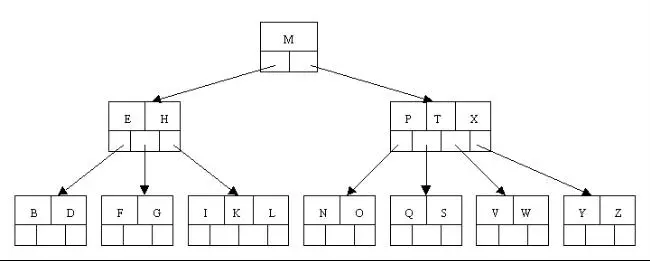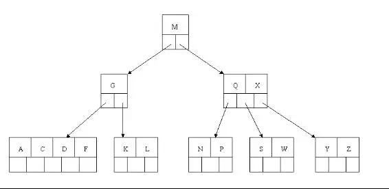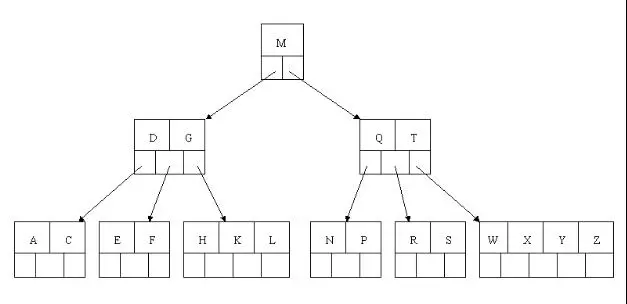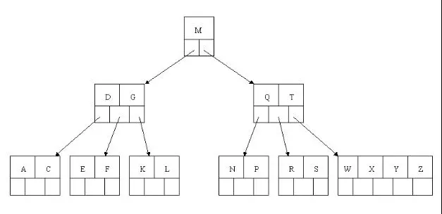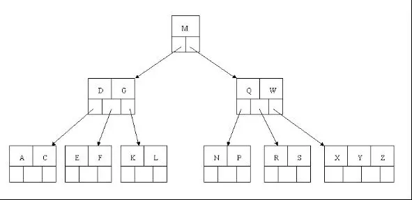 但是咱们有面对这样一个实际问题:就是大规模数据存储中,实现索引查询这样一个实际背景下,树节点存储的元素数量是有限的(如果元素数量非常多的话,查找就退化成节点内部的线性查找了),这样导致二叉查找树结构由于树的深度过大而造成磁盘I/O读写过于频繁,进而导致查询效率低下(为什么会出现这种情况,待会在外部存储器-磁盘中有所解释),那么如何减少树的深度(当然是不能减少查询的数据量),一个基本的想法就是:采用多叉树结构(由于树节点元素数量是有限的,自然该节点的子树数量也就是有限的)。