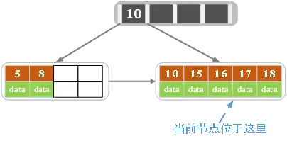 3)针对索引结点:如果当前结点key的个数小于等于m-1,插入结束。反之将这个索引类型结点分成两个索引结点,左索引结点包含前(m-1)/2个数据,右结点包含m-(m-1)/2个数据,然后将第m/2个key父结点中,进位到父结点的key左孩子指向左结点, 父结点的key右孩子指向右结点。