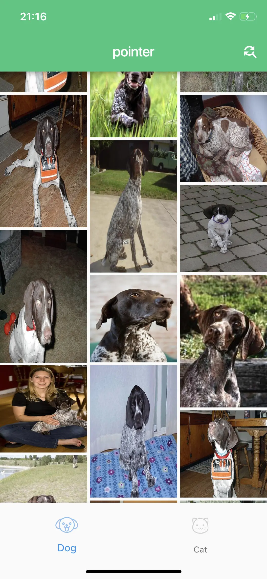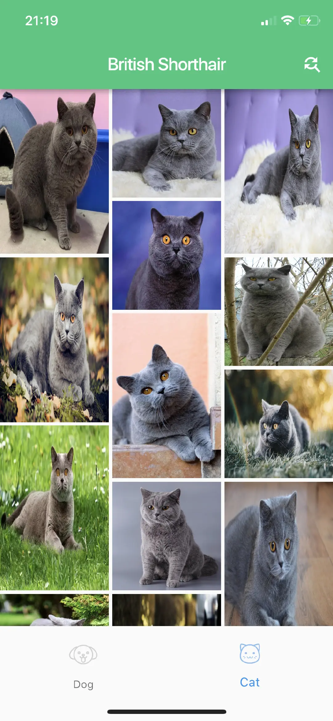 自从 Flutter 推出之后, 一直是备受关注, 有看好的也有不看好的, 作为移动开发人员自然是要尝试一下的(但是它的嵌套写法真的难受), 本着学一个东西, 就一定要动手的态度, 平时又喜欢看一些猫狗的图片, 就想着做一个加载猫狗图片你的 APP, 界面图如下(界面不是很好看).